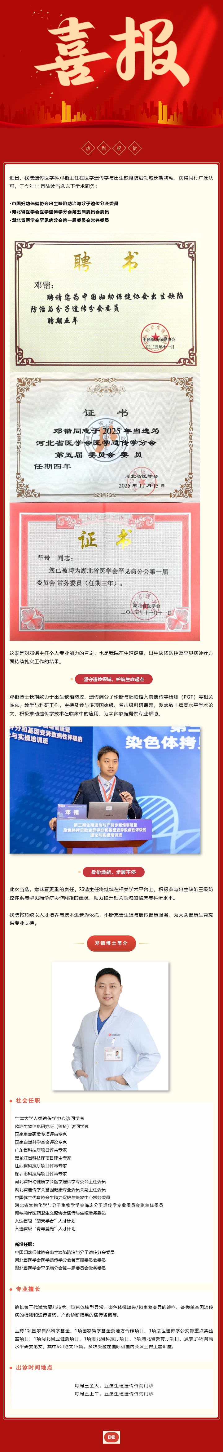 【新闻资讯】 - 喜报 | 我院邓锴博士当选多项重要学术职务,助力出生缺陷防治与罕见病诊疗事业